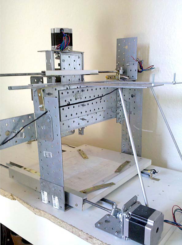 | Aquí se puede ver perfectamente el uso de husillos roscados métricos. También la fresadora de carpintería es ideal (Y para manejar esta necesitas las dos manos?) |