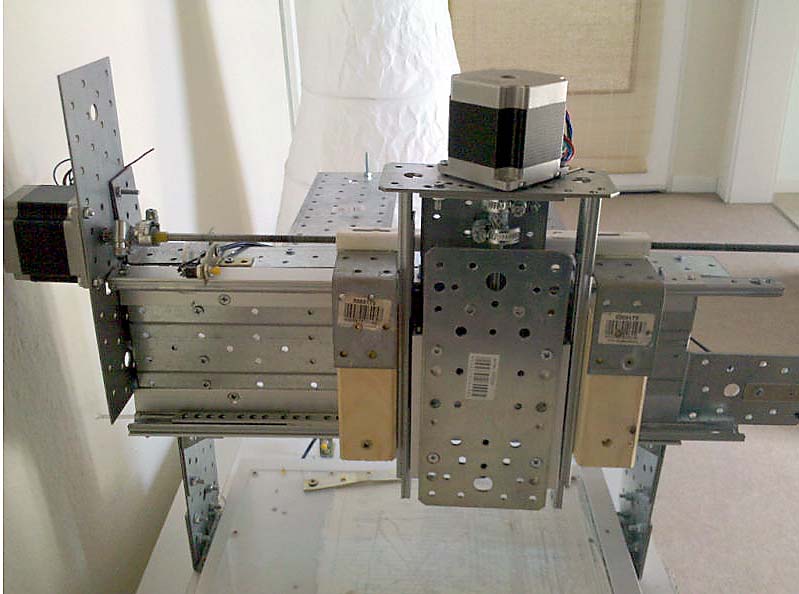 Sogar Endschalter hat diese Fräse. Das ist aber auch ganz wichtig, weil die würde wahrscheinlich sofort umkippen oder auseinanderfallen, wenn eine Achse auf Anschlag läuft.